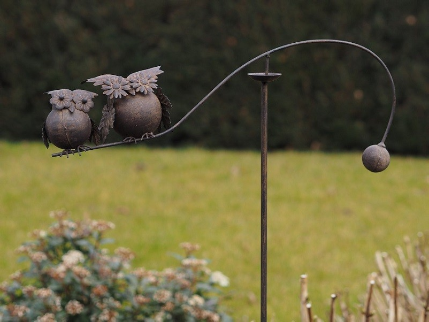 Ce hibou de 1,40 m de haut se balance sur son perchoir grâce à un contrepoids et agite majestueusement ses ailes au moindre souffle.